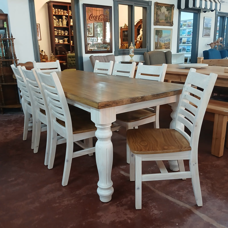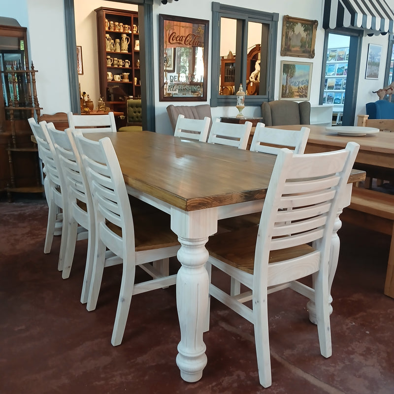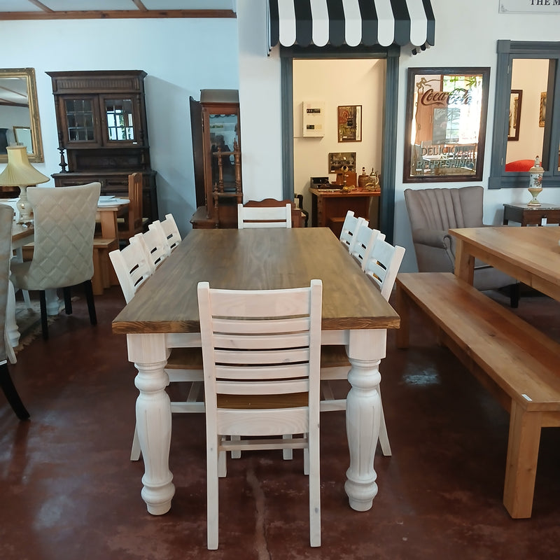 8 seater Dining Table with Matching Chairs in Rustic & Whitewash