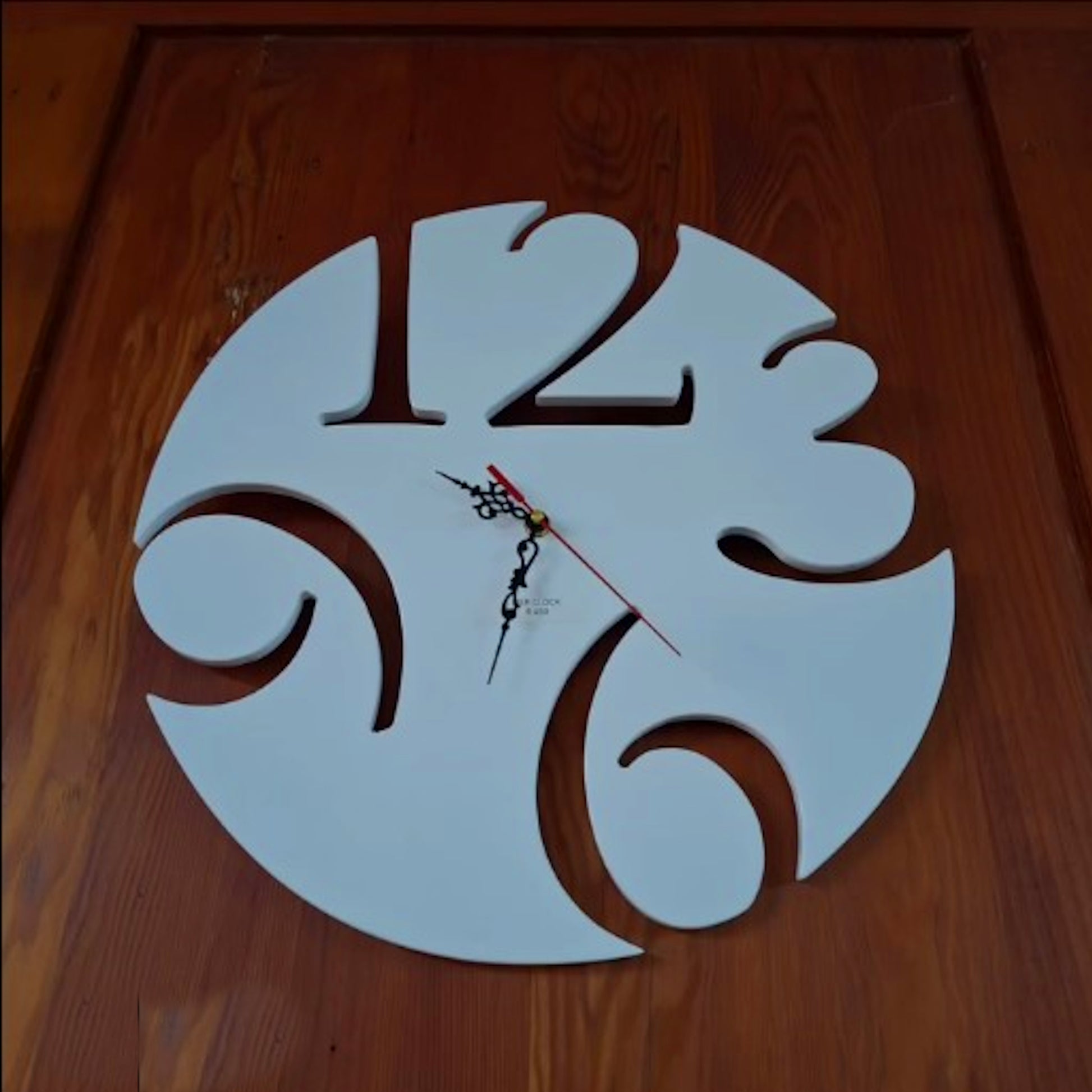 This wooden white wall clock combines a sleek, modern finish with a quirky, off-centre design for a distinctive look. Its smooth white surface enhances any room with subtle sophistication, while the unconventional layout adds dynamic charm and visual intrigue. Expertly crafted, it serves as both a functional timepiece and a unique decorative statement.