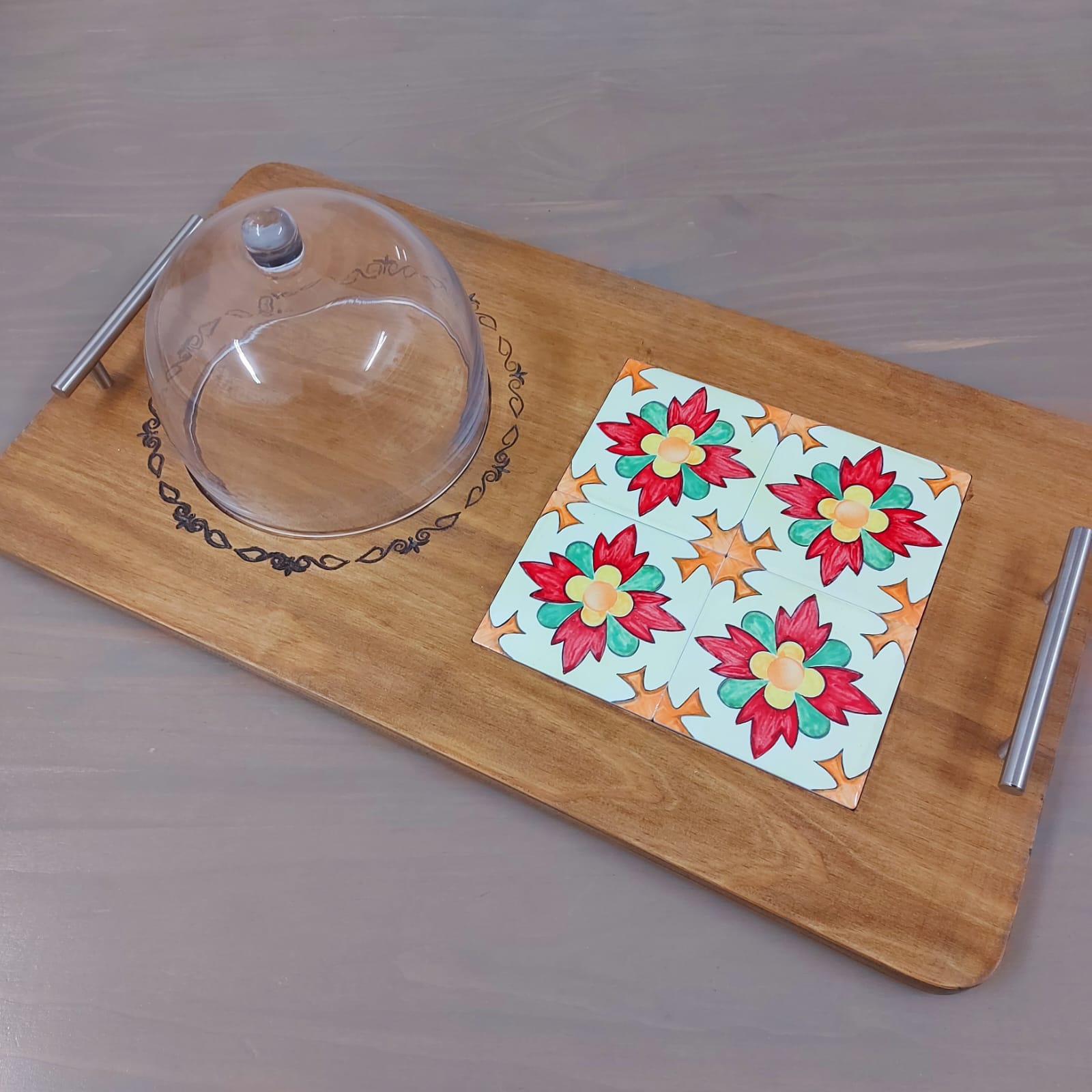 Elevate your entertaining with this sophisticated cheese board, featuring a protective glass dome and coordinating tiles for elegant presentation. The dome preserves freshness while adding a refined touch to your table, while the included tiles provide practical serving surfaces for varied cheeses and accompaniments. Ideal for hosting gatherings or creating an impressive charcuterie display that commands attention.
