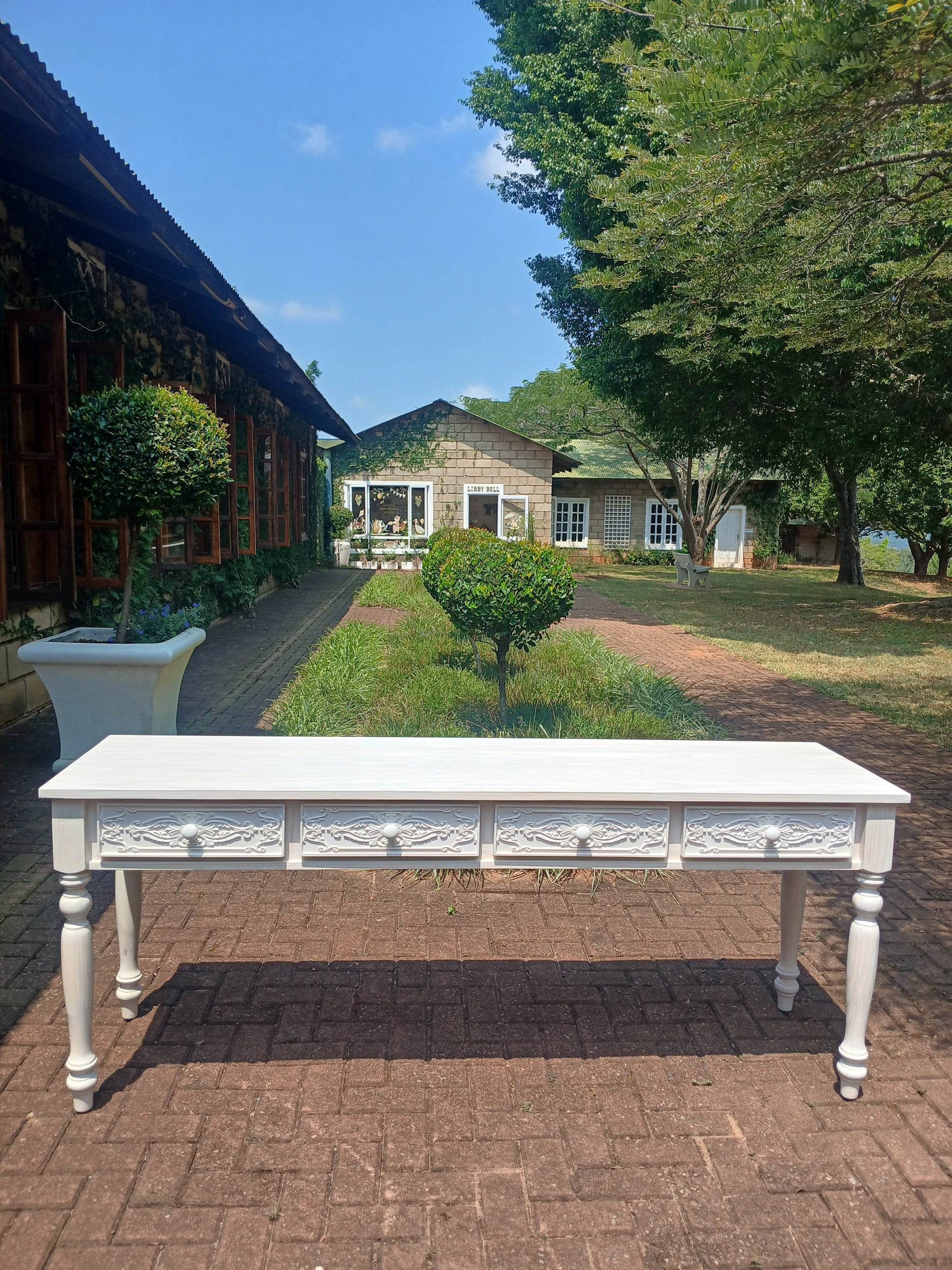 Whitewashed Carved 4 Drawer Server.