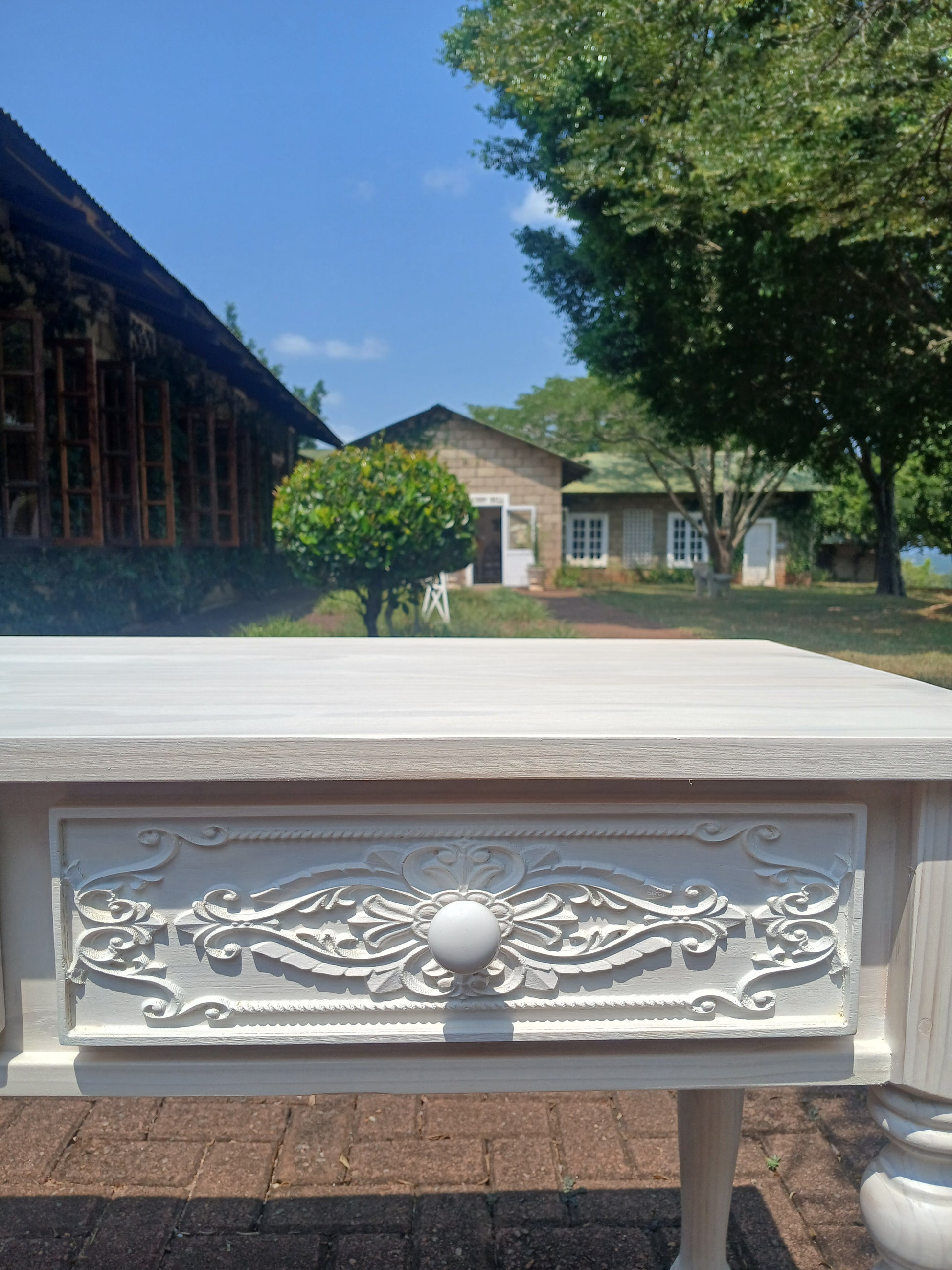 Whitewashed Carved 4 drawer server.